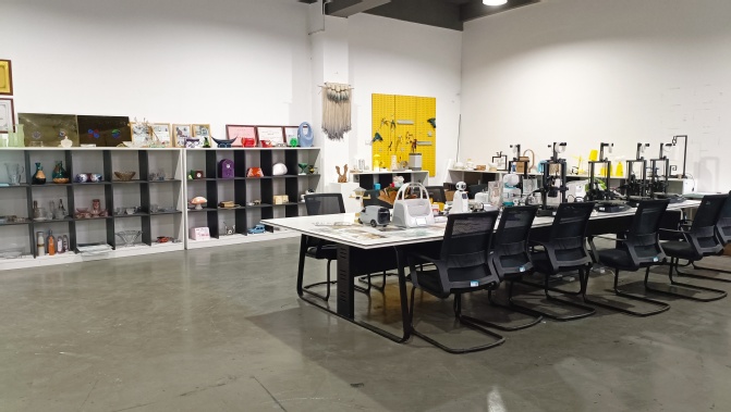 艺术设计学院智能与玻璃产品设计工作室成立于 2025年,是一个以智能小家电产品及日用玻璃产品设计、制造为主题,面向产品设计、工业设计,以及工学、计算机科学与技术等跨学科专业的协同创新平台。可承担智能家居产品设计、玻璃产品设计、智能机器人设计、3D打印技术及应用、校企合作项目实践、创新创业训练项目实践、学科竞赛、毕业设计等课程实训任务。配有3D打印机、激光切割机、电脑、投影仪、焊接、热熔、喷漆等专业设备,以及工作椅、文件柜、陈列展示柜等辅助设施,总价值10余万余元。