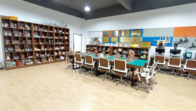 蚌埠学院艺术设计学院创意工坊于2018年正式投入运行,作为“工作室制”实践与实训教学改革的重要举措,共建成包括数字媒体衍生品工作室、包装印刷工作室、皮雕工作室、民间装饰艺术工作室、综合材料工作室、智能与玻璃产品设计等多个工作室,具体如下:
