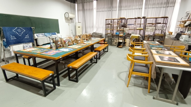 艺术设计学院民间装饰艺术工作室成立于2018年,主要职能是为设计类专业学生提供专业实践教育,同时面向全校非艺术专业学生提供跨学科美育体验。可承担传统工艺创新、数字媒体艺术专业创新项目实训、校企合作项目实践、学科竞赛活动,以及全校非艺术类专业传统手工漆艺、扎染蜡染、纤维布艺、金丝沙画等公选课程。
