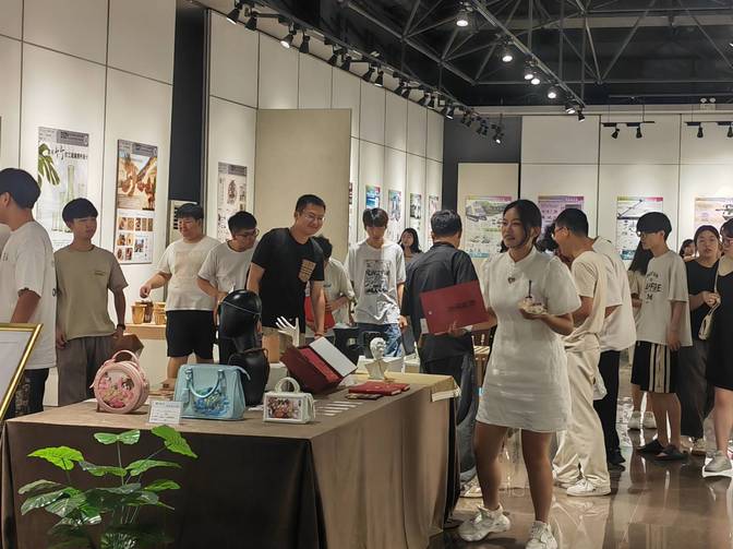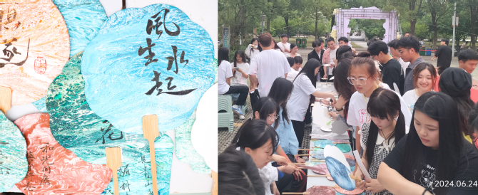 现场举行制作纪念漆扇活动,引起了毕业生的浓厚兴趣,他们在漆扇上写下了同学之间的美好祝愿。
