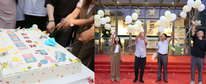 师生分享毕业纪念蛋糕并放飞梦想气球将典礼推向了高潮。