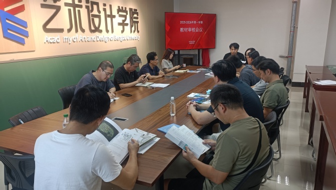 8月26日,艺术设计学院教学工作委员会召开新学期教材审核会议,会议由学院党委书记高善春主持,学院领导班子,教学工作委员会成员、各专业负责人及骨干教师作为教材审核小组成员参加了会议。