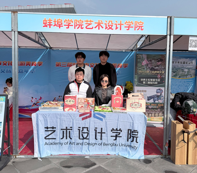 为推动地方文化旅游产业与艺术设计的融合发展,近日,艺术设计学院组织师生参与了“第三届蚌埠市文化旅游美食季——‘体文旅’嘉年华活动,以艺术设计的视角展示了蚌埠本地的文化旅游资源和美食文化。