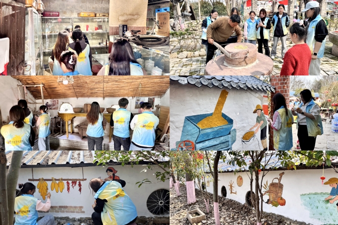 为弘扬雷锋精神,发挥艺术专业特色助力乡村文化振兴,3月22日,蚌埠学院艺术设计学院团委开展“虹色经纬”新时代文明实践美育墙绘志愿服务。学院师生20余人走进金色农家博物馆,共同创作40米主题墙绘,以艺术为乡村添彩。大家在实践中践行奉献精神,用专业所长服务基层,充分展现了新时代青年的责任与担当。